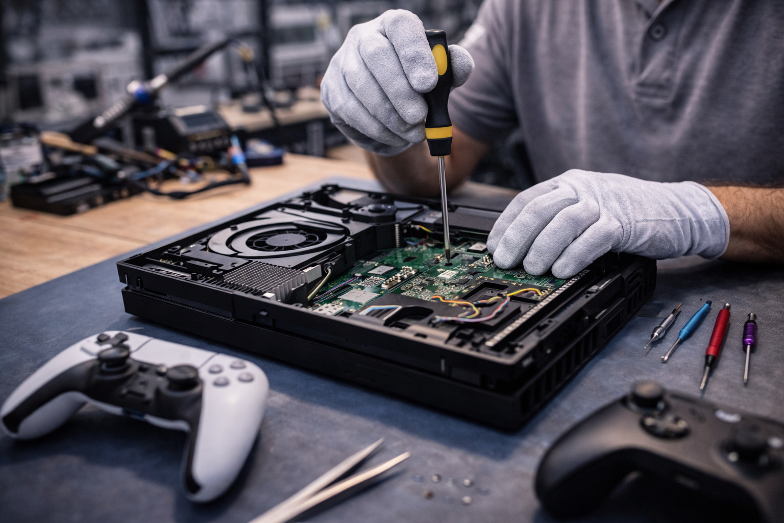 Serwis konsol to usługa dla osób, które chcą przywrócić sprawność urządzenia bez ryzyka pogłębiania usterki przez dalsze użytkowanie. Konsole często trafiają do serwisu z powodu przegrzewania, problemów z wyjściem obrazu, głośnej pracy lub kłopotów z odczytem nośników i akcesoriów. W RAF-COMP podchodzimy do takiego sprzętu z naciskiem na stabilność pracy i ocenę stanu chłodzenia, bo to jeden z najczęstszych powodów pogorszenia działania urządzenia.